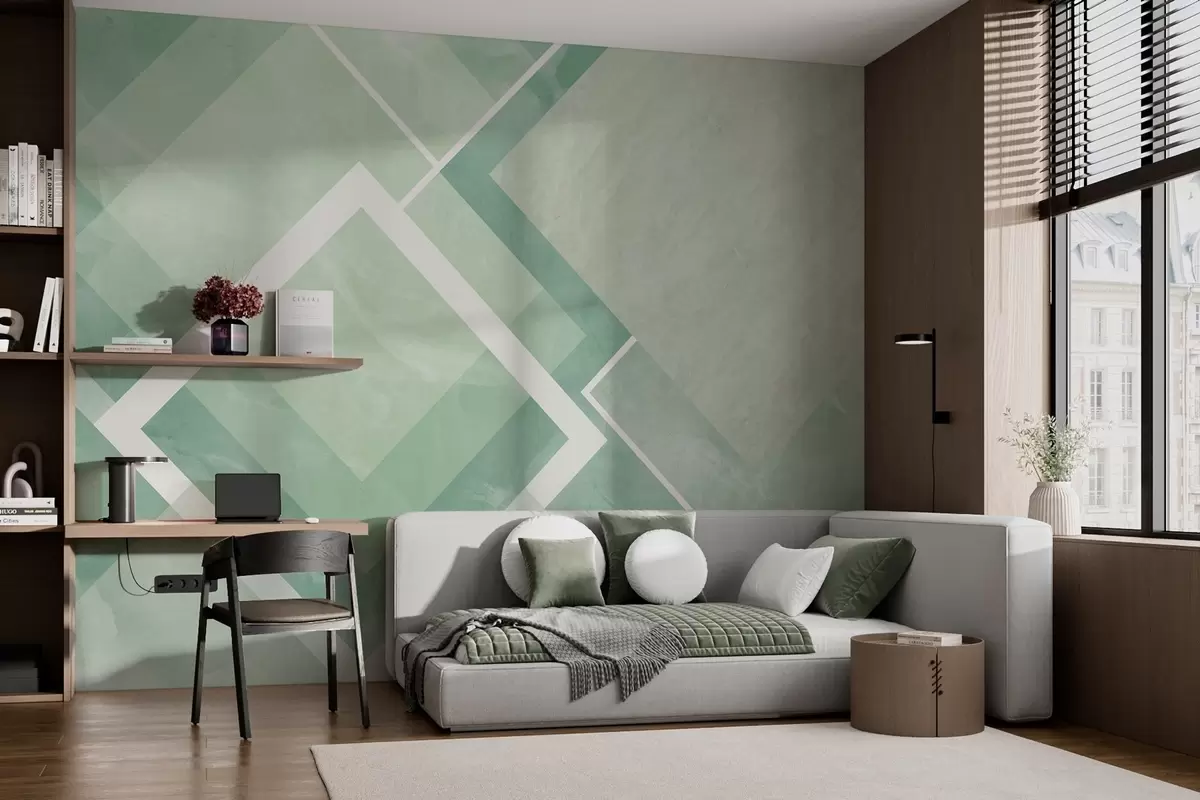 Τοιχογραφίες Γεωμετρία σε πράσινους τόνους Nr. w02062v2