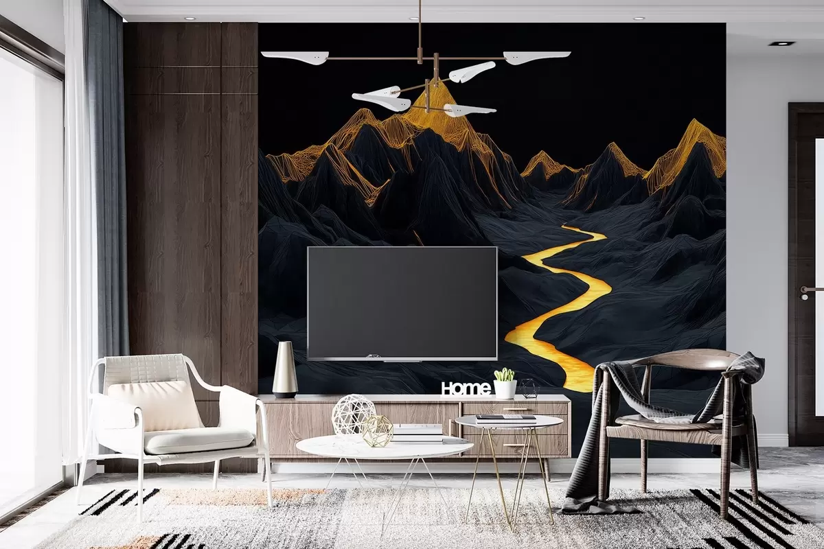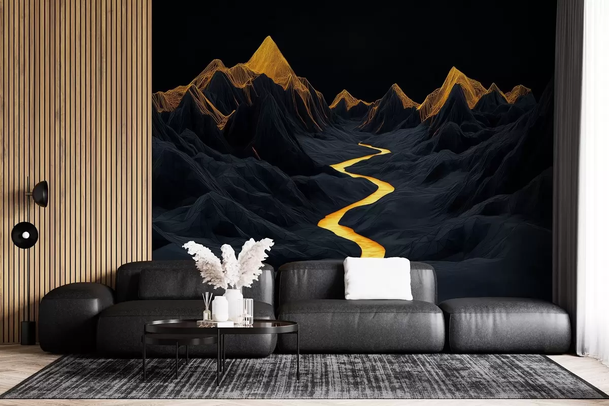 Τοιχογραφίες Πολυγωνικό μαύρο τοπίο και ένα ποτάμι ανάμεσα στα βουνά Nr. w02063