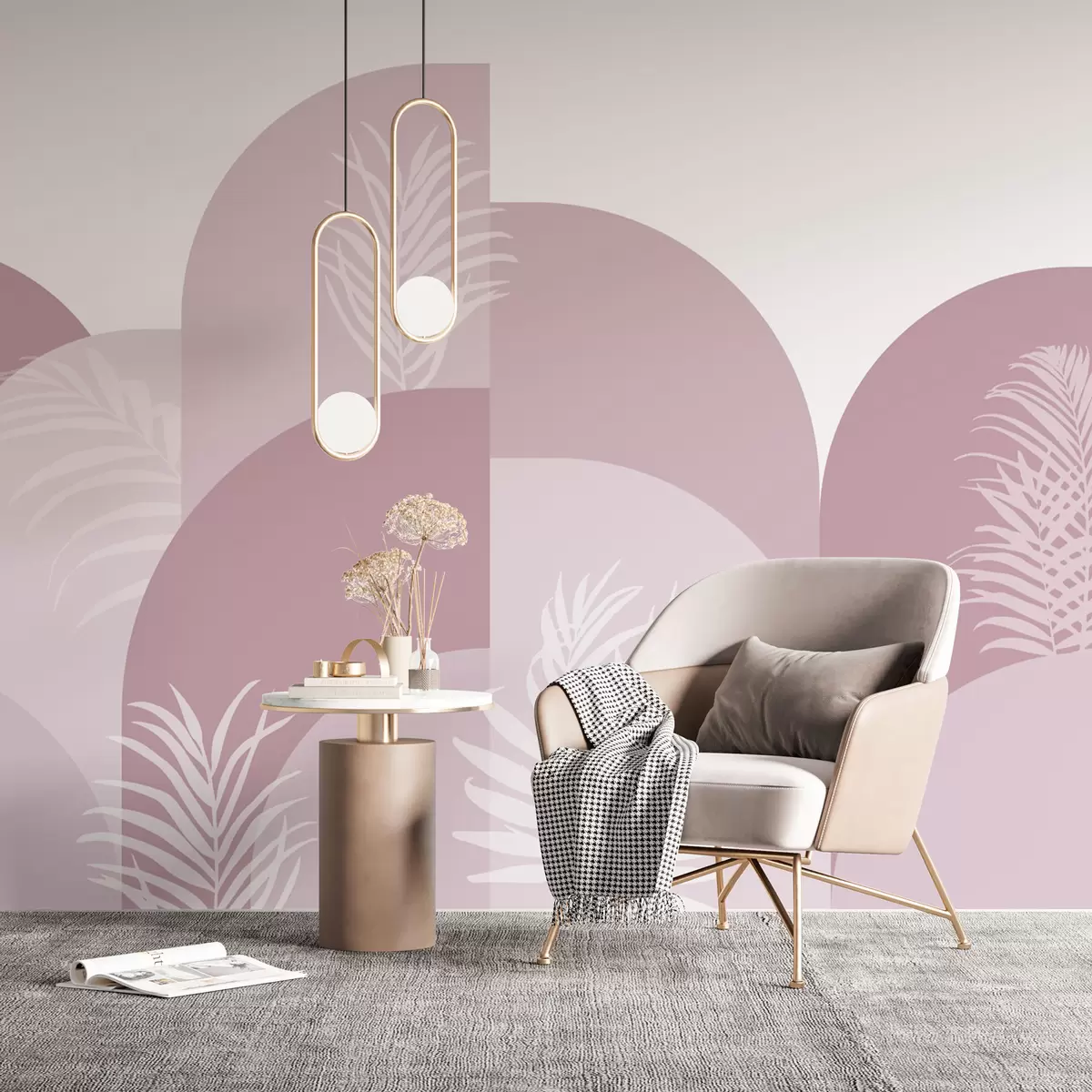 Τοιχογραφίες Μοντέρνες καμάρες με τροπικά φύλλα ροζ χρώματος Nr. w02101v4