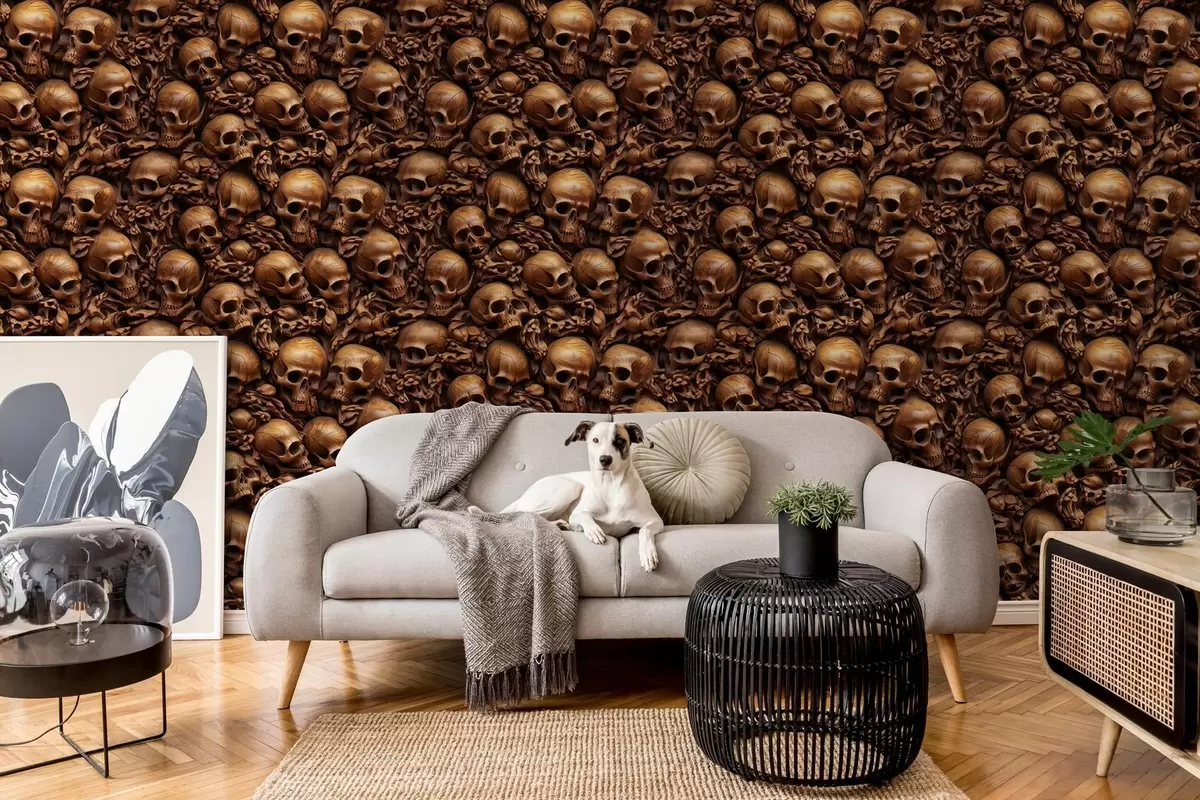 Τοιχογραφίες Ταπετσαρία με απομίμηση τρισδιάστατων κρανίων σκαλισμένων από ξύλο Nr. w02121