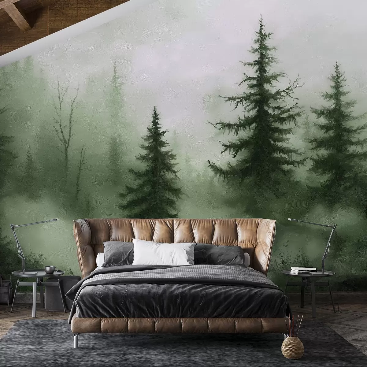 Τοιχογραφίες Σκούρο πράσινο δάσος, ελαιογραφία, πινελιές, φύση Nr. w02153v1