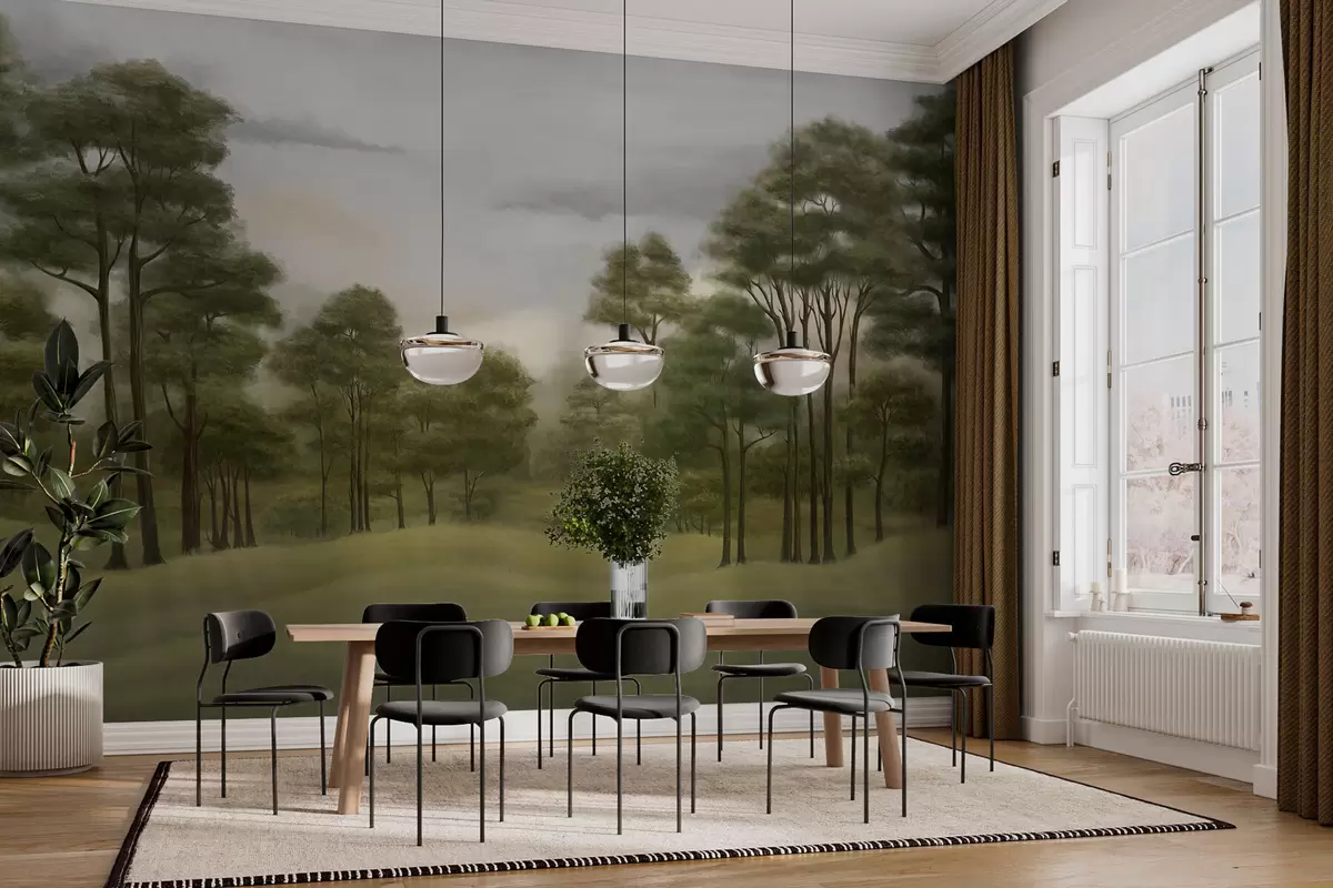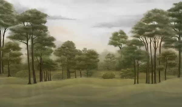 Τοιχογραφίες Γαλήνιο δασικό τοπίο σε απαλές αποχρώσεις Nr. w02193