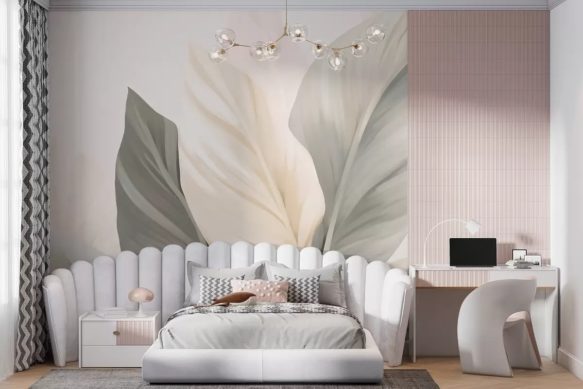 Τοιχογραφίες Μπεζ και γκρι φύλλα σε ανοιχτό φόντο Nr. w02217