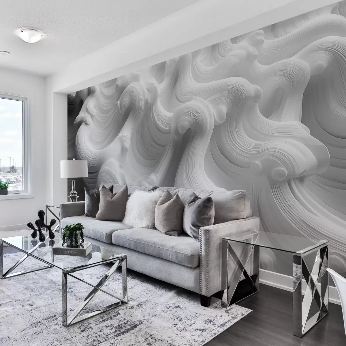 Τοιχογραφίες Λευκά ανάγλυφα κύματα Nr. w02235
