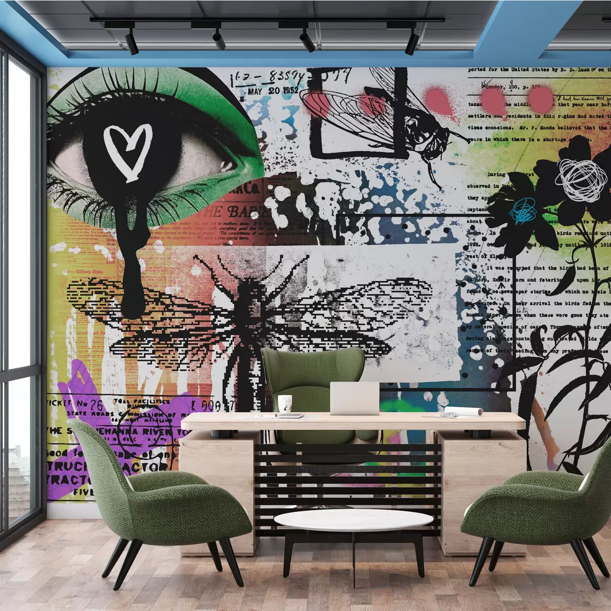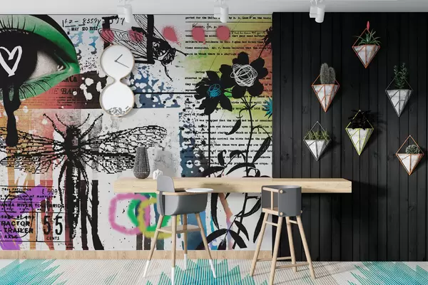 Τοιχογραφίες Επιγραφές σε στυλ γκράφιτι, λουλούδια, σχήματα Nr. w02255