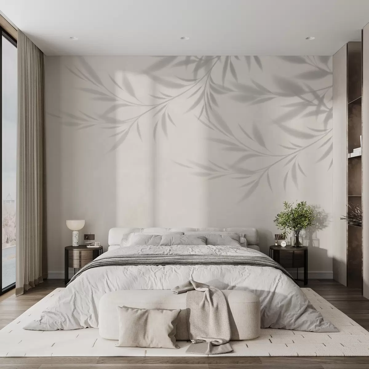 Τοιχογραφίες Σκιά από κλαδιά και φύλλα σε μπεζ φόντο Nr. w02283v1