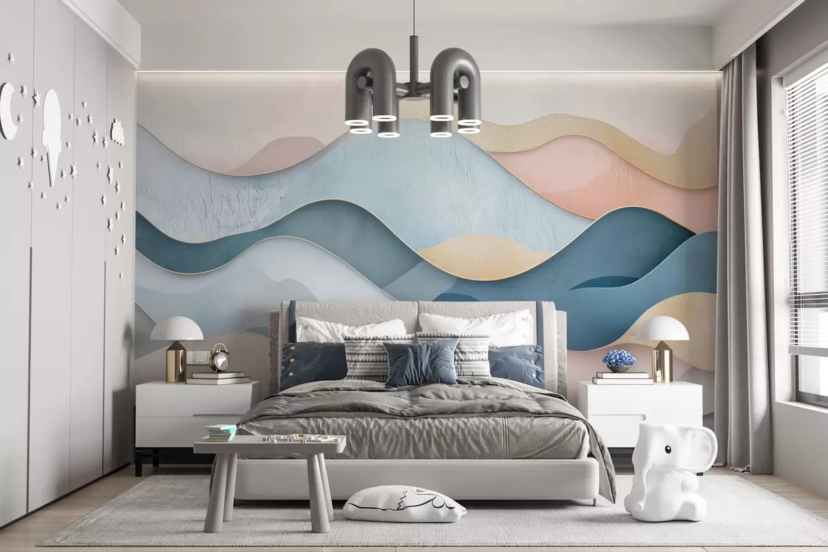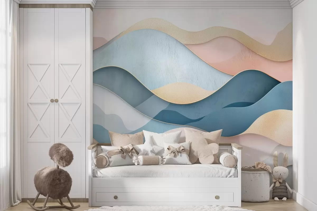 Τοιχογραφίες Κυματιστό μοτίβο Art Deco σε ροζ και μπλε χρώματα Nr. w02290