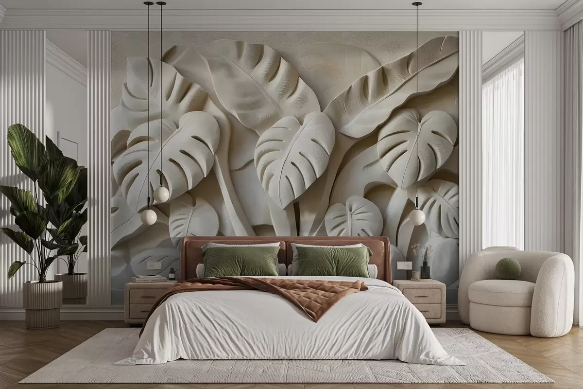 Τοιχογραφίες Βασικό ανάγλυφο μεγάλων φύλλων monstera Nr. w02312