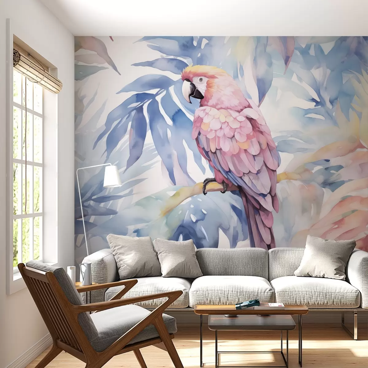 Τοιχογραφίες Ροζ παπαγάλος που κάθεται σε ένα κλαδί απομίμηση της ζωγραφικής Nr. w02330