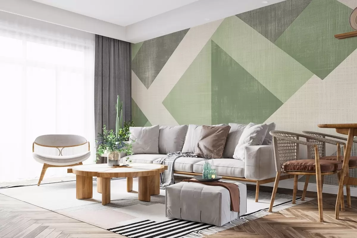 Τοιχογραφίες Μοντέρνο γεωμετρικό σχέδιο ταπετσαρίας με επικαλυπτόμενα σχήματα σε απαλές μπεζ και καφέ αποχρώσεις Nr. w02341v2