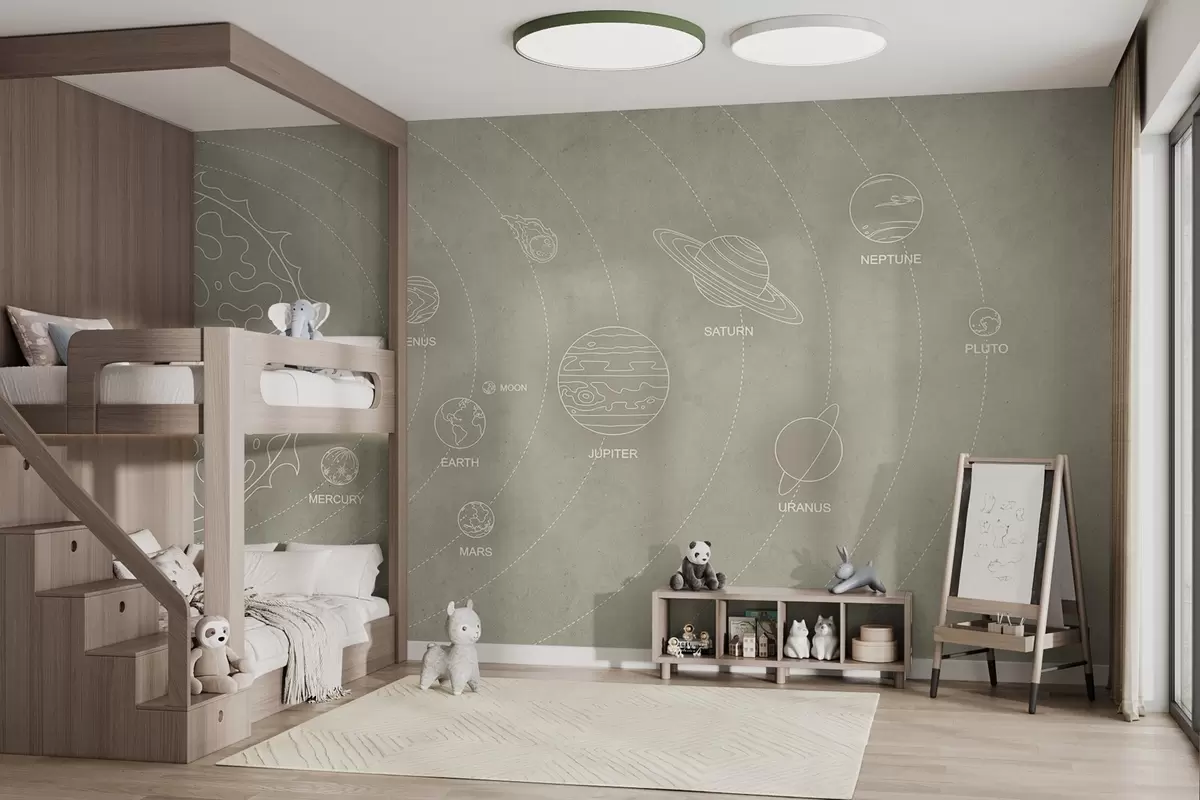Τοιχογραφίες Ηλιακό σύστημα σε μινιμαλιστικό στυλ σε δροσερό μπεζ φόντο με υφή Nr. w02344