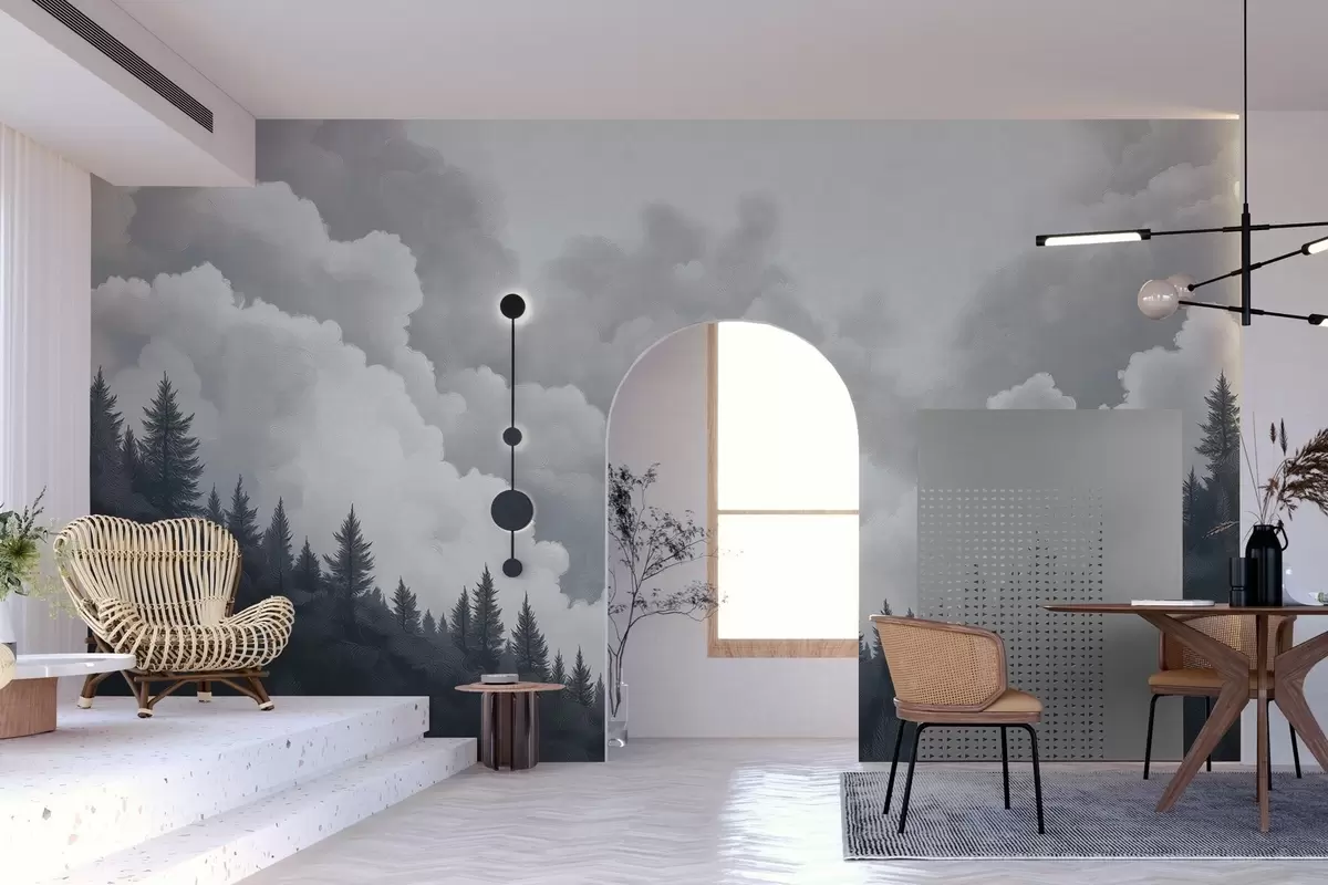 Τοιχογραφίες Ζωγραφισμένα πυκνά σύννεφα πάνω από το δάσος σε στυλ λαδιού Nr. w02411