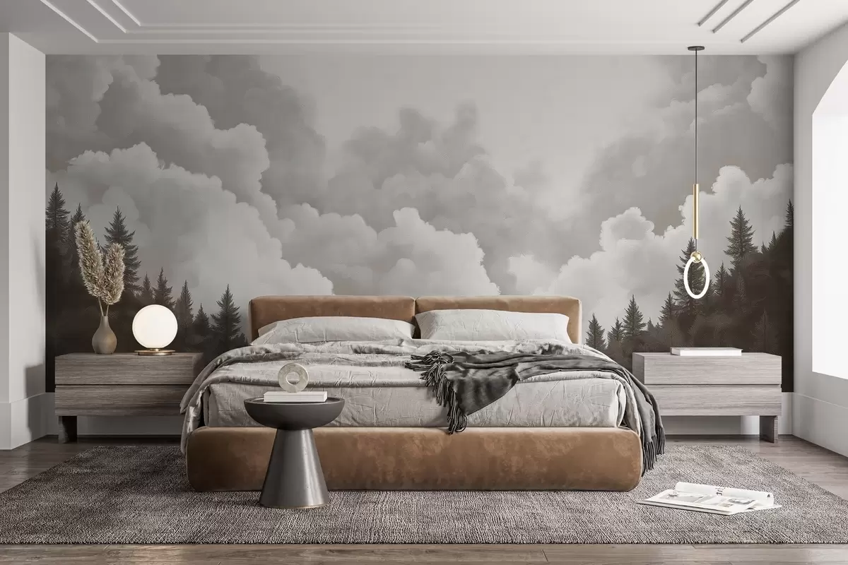 Τοιχογραφίες Ζωγραφισμένα πυκνά σύννεφα πάνω από το δάσος σε στυλ λαδιού Nr. w02411v1