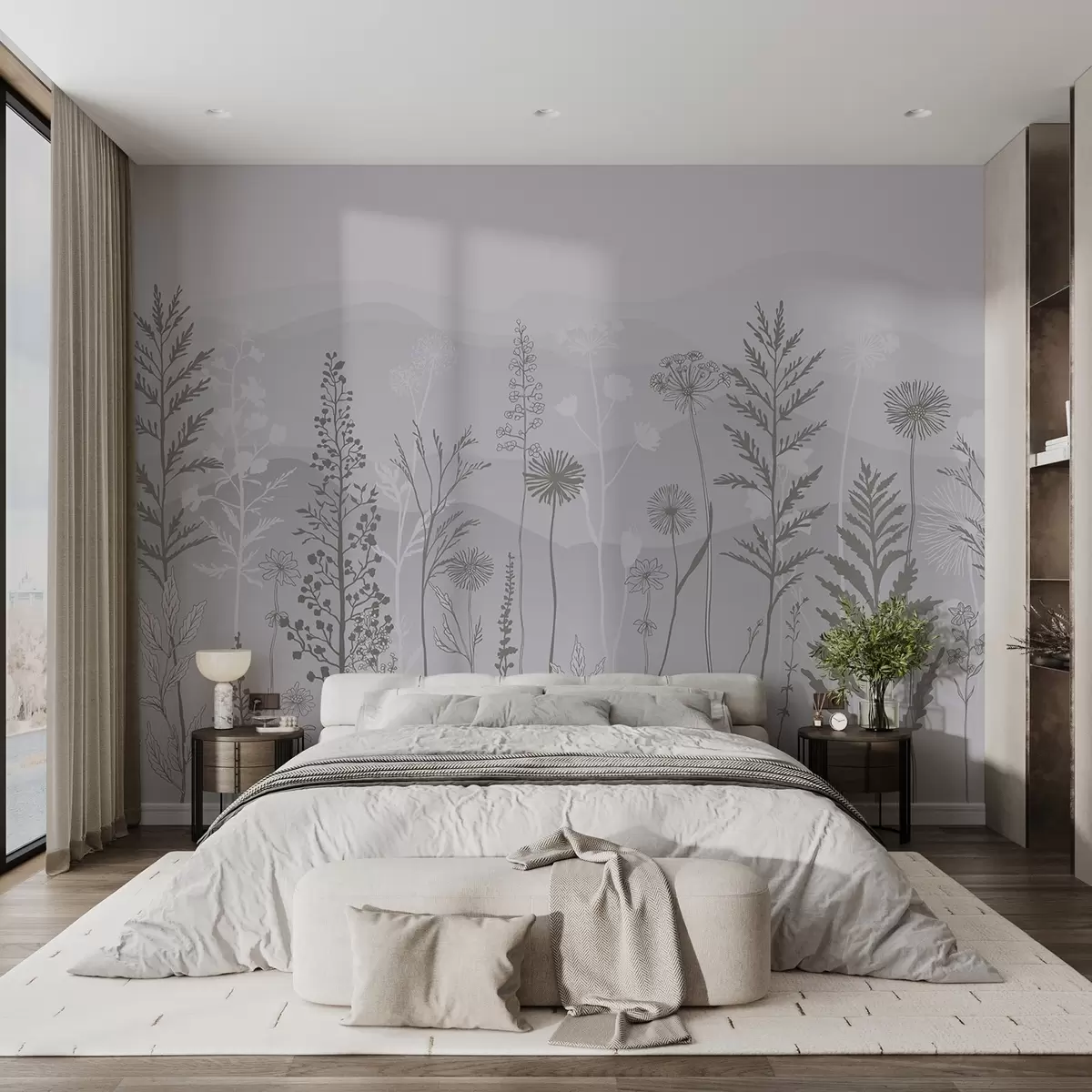 Τοιχογραφίες ταπετσαρία οικολογικού στυλ, αγριολούλουδα σε γκρι τόνους Nr. w02443