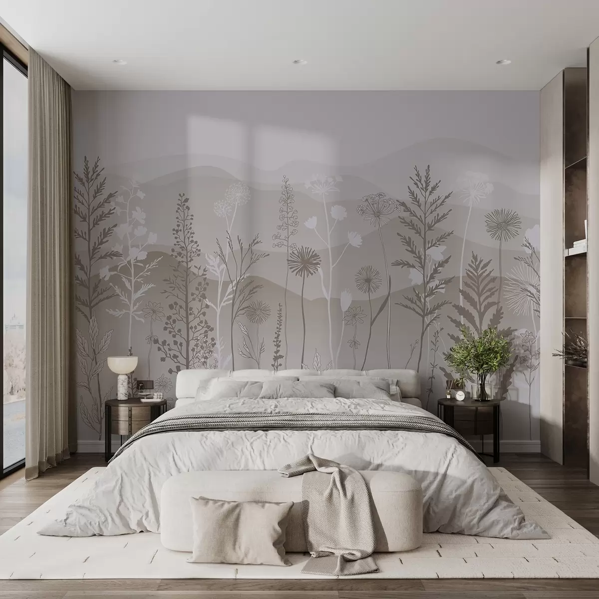 Τοιχογραφίες ταπετσαρία οικολογικού στυλ, αγριολούλουδα σε ανοιχτές καφέ αποχρώσεις Nr. w02443v1
