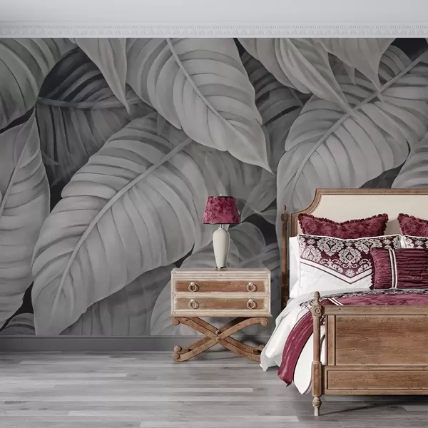 Τοιχογραφίες Μονόχρωμη εικόνα τροπικών φύλλων Nr. w02463