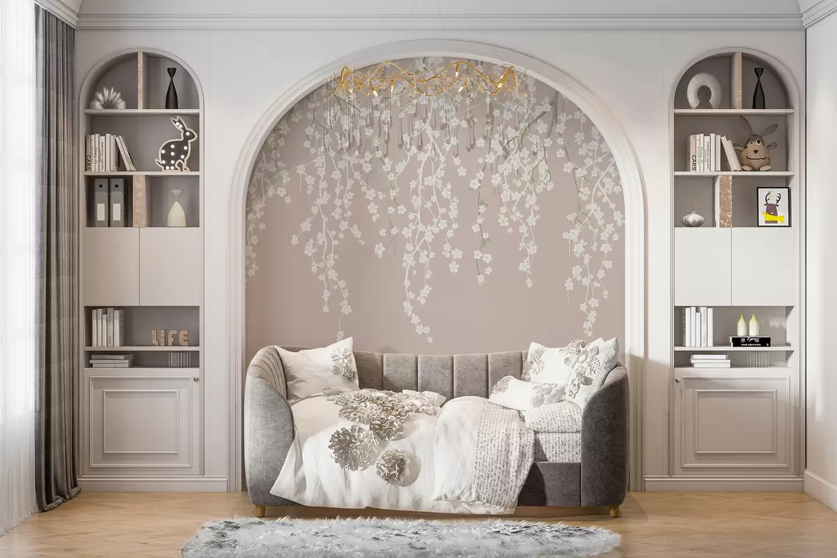 Τοιχογραφίες Ρευστά λεπτά κλαδιά με λουλούδια σε παστέλ φόντο Nr. w02479v2