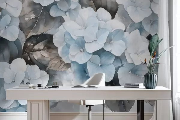 Τοιχογραφίες Ορτανσία λουλούδια, υδατογραφία στυλ σχέδιο, μπλε χρώματα, floral Nr. w02488v1