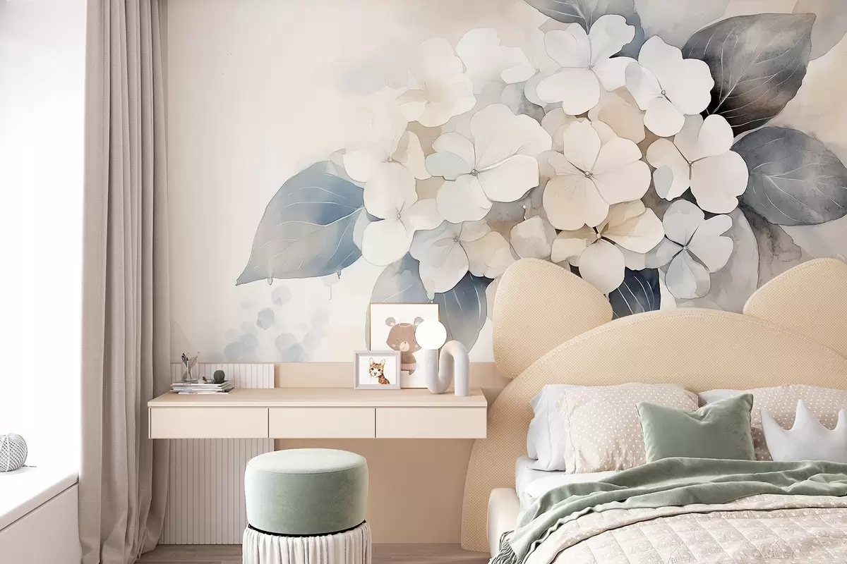 Τοιχογραφίες Λουλούδι ορτανσίας, απαλά χρώματα, στυλ ακουαρέλας Nr. w02491