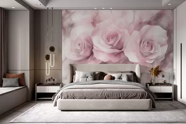 Τοιχογραφίες Όμορφα τριαντάφυλλα, στυλ ακουαρέλας, ροζ χρώματα, μποέμικο Nr. w02492v1