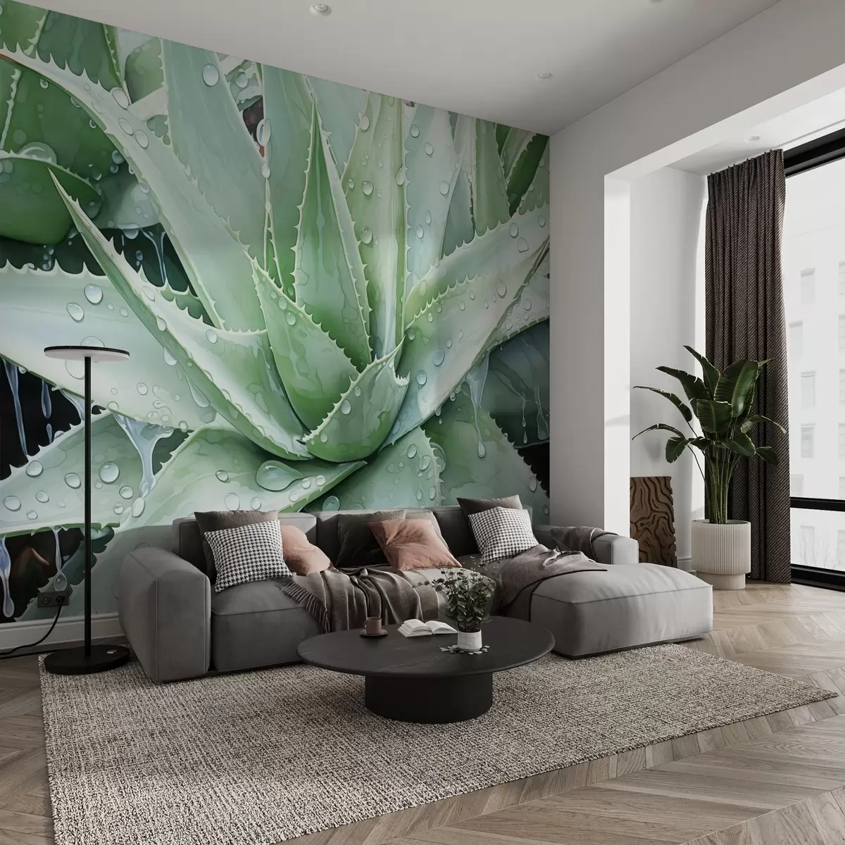 Τοιχογραφίες Σταγόνες δροσιάς στην απομίμηση υδατογραφίας αλόης Nr. w02503