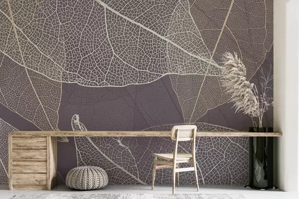 Τοιχογραφίες κοντινό πλάνο φύλλων με φλέβες σε μοβ-γκρι αποχρώσεις Nr. w02520v3