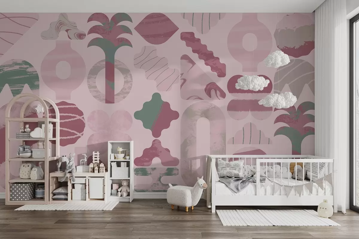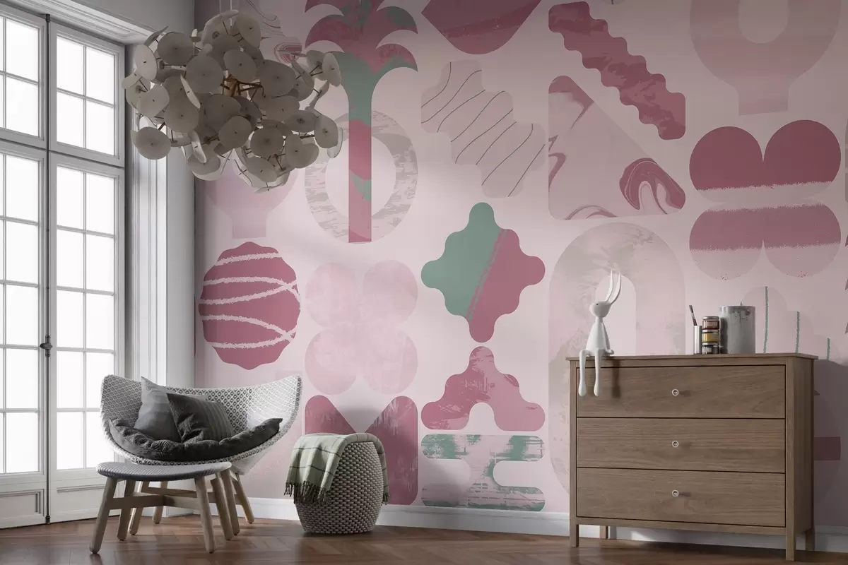 Τοιχογραφίες διάφορα ενδιαφέροντα σχήματα, μοντέρνα γεωμετρία σε ροζ χρώματα Nr. w02550