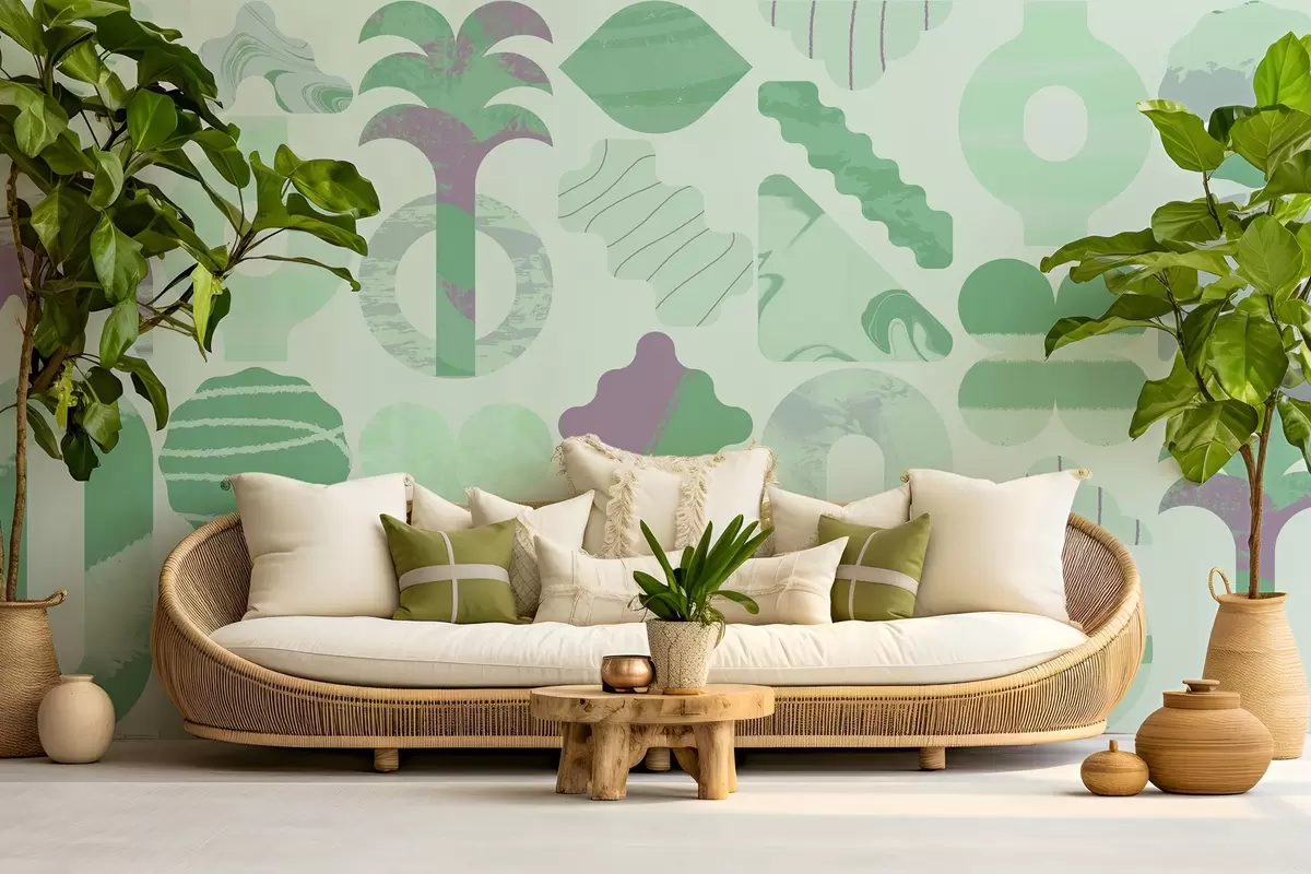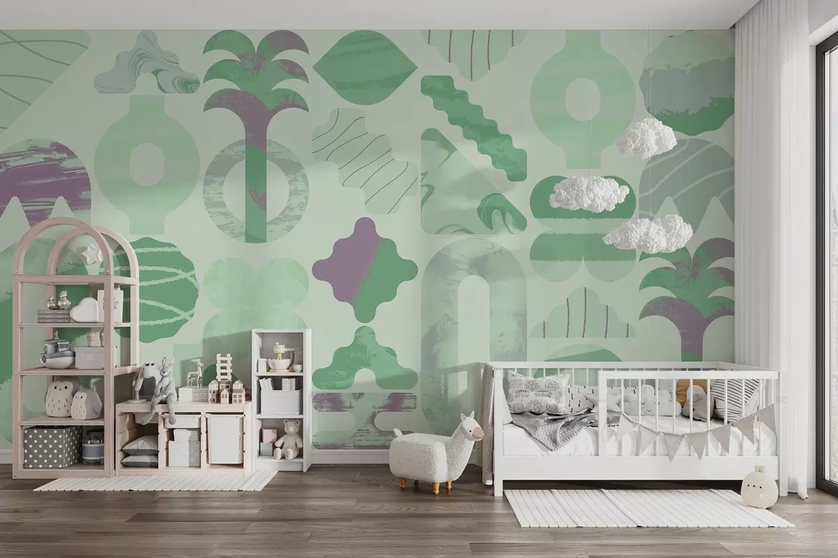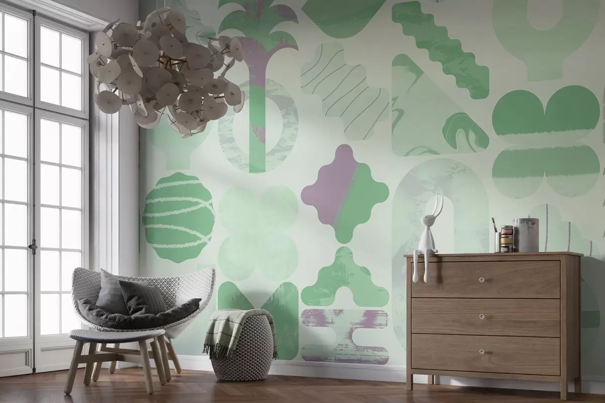 Τοιχογραφίες διάφορα ενδιαφέροντα σχήματα, μοντέρνα γεωμετρία σε πράσινα χρώματα Nr. w02550v2