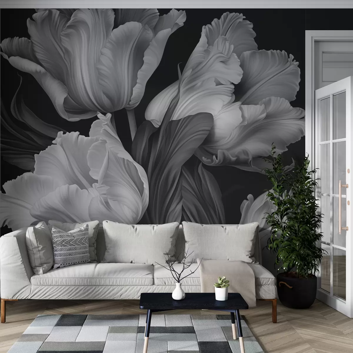 Τοιχογραφίες Μαύρες και λευκές τουλίπες σε φωτορεαλιστικό στυλ Nr. w02557