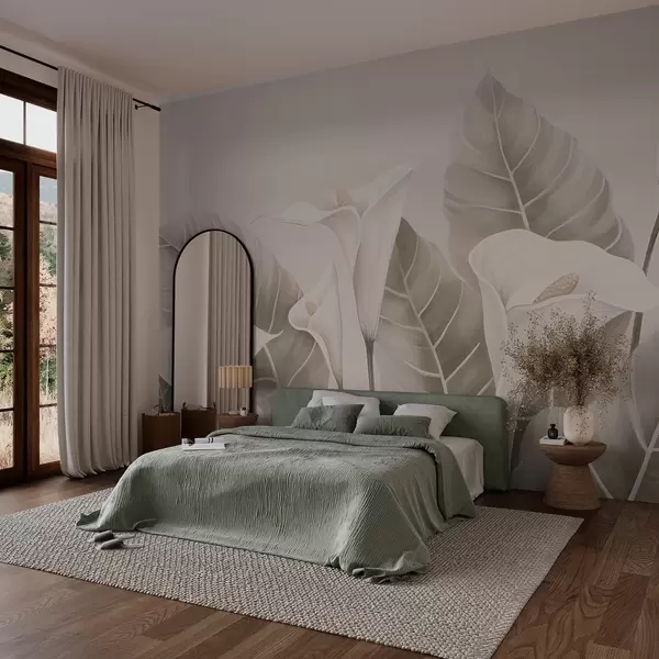 Τοιχογραφίες κρίνους σε φόντο από φύλλα Nr. w02568