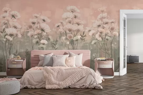 Τοιχογραφίες Λεπτά αγριολούλουδα με πινελιές σε ροζ χρώμα Nr. w02629