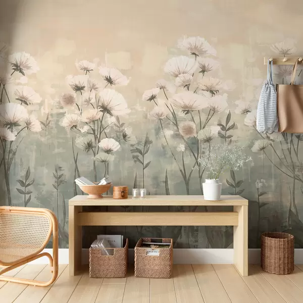 Τοιχογραφίες Λεπτά αγριολούλουδα με πινελιές σε κίτρινο και μπεζ χρώμα Nr. w02629v1