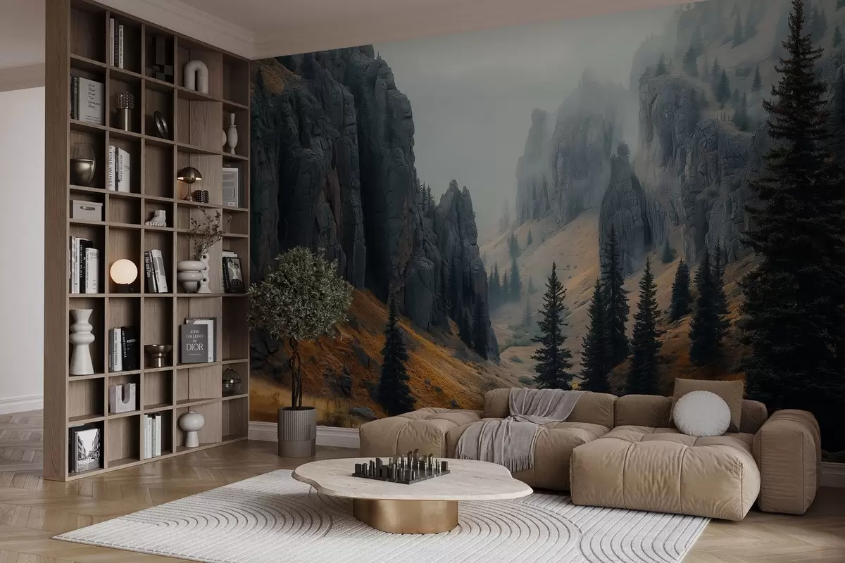 Τοιχογραφίες μυστικιστικό τοπίο με βράχους και έλατα Nr. w02682