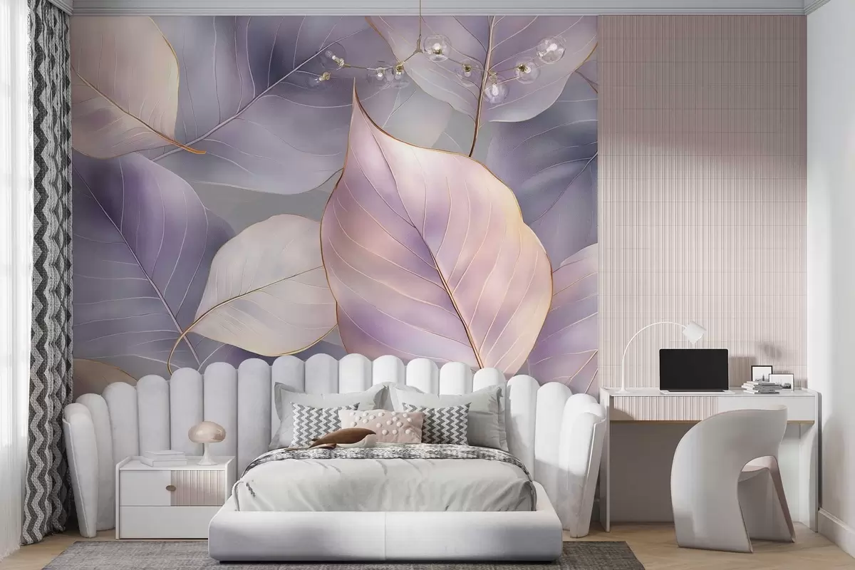 Τοιχογραφίες φύλλα σε μοβ αποχρώσεις Nr. w02691