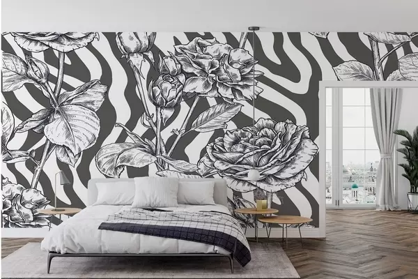 Τοιχογραφίες τριαντάφυλλα σε φόντο ζέβρα Nr. w02692