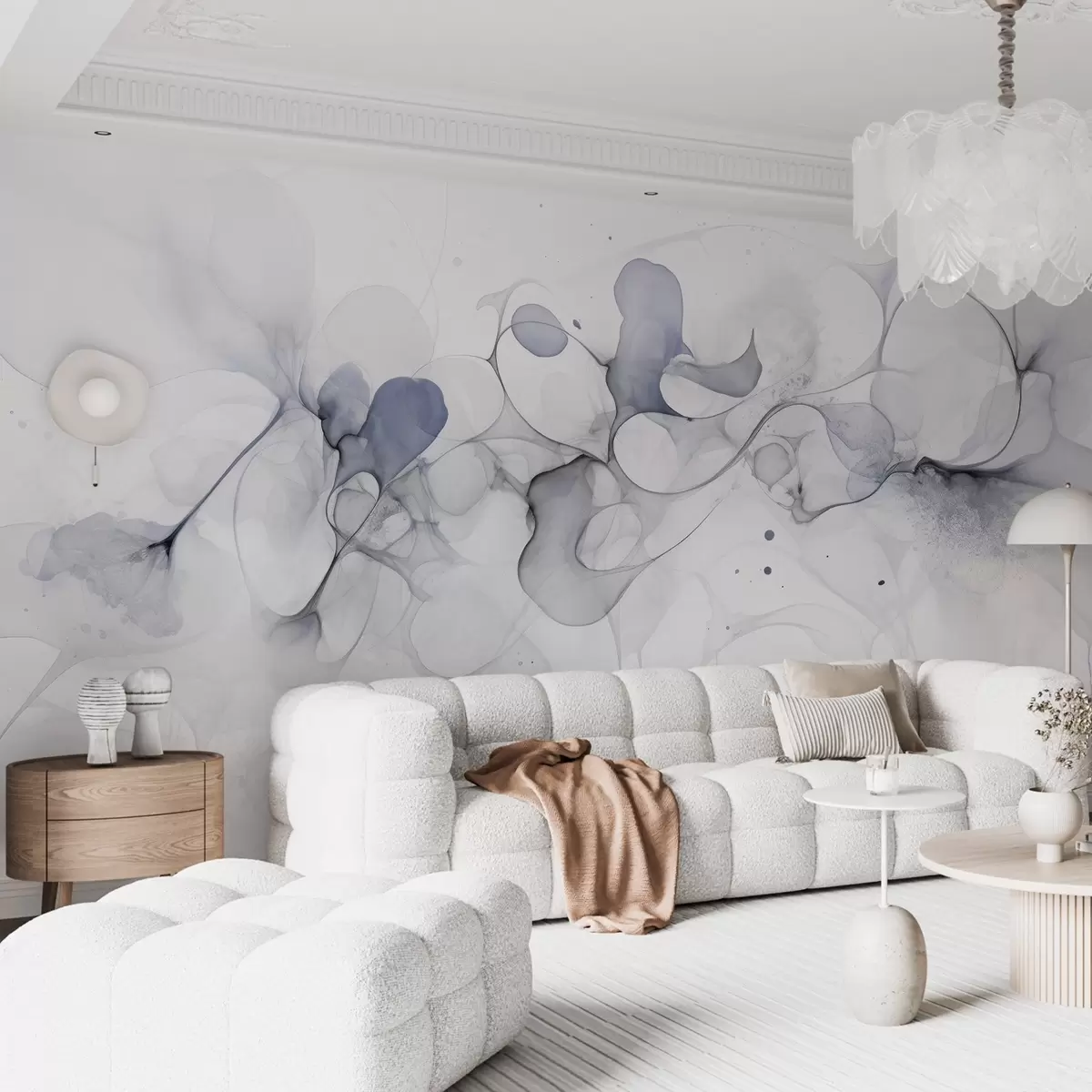 Τοιχογραφίες Fluid art style, αφαίρεση, απαλά γκρι χρώματα Nr. w02745v3