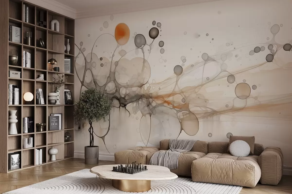 Τοιχογραφίες Αφαίρεση, μινιμαλισμός, τέχνη με μελάνι, ρευστό, μπεζ και γκρι χρώματα Nr. w02750