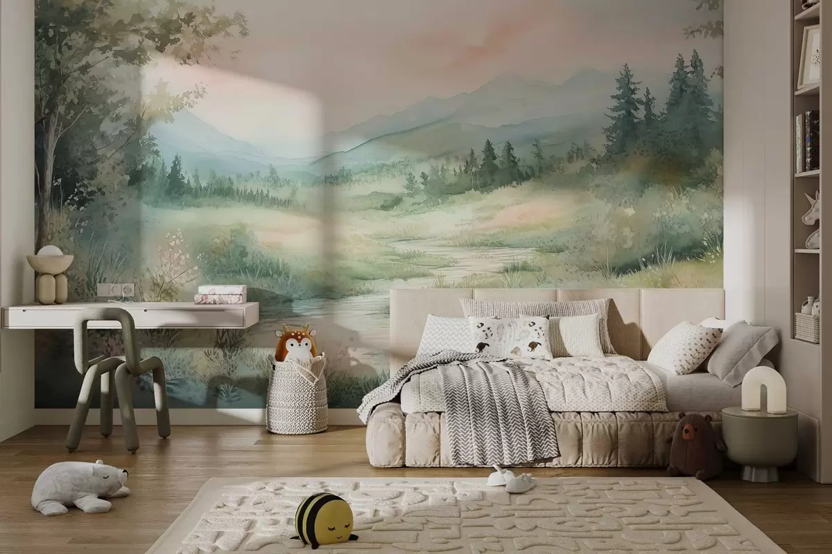 Τοιχογραφίες ακουαρέλα τοπίο με μονοπάτι και βουνά Nr. w02764