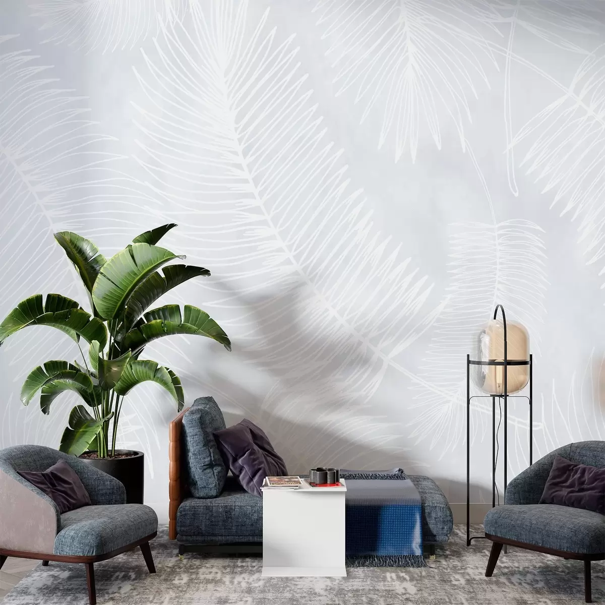 Τοιχογραφίες Λευκές σιλουέτες φύλλων σε φόντο με υφή Nr. w02894v1