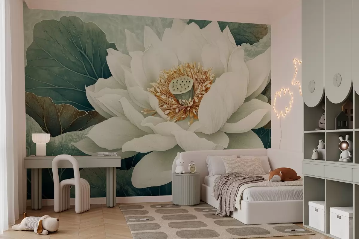 Τοιχογραφίες Μεγάλο νούφαρο με φόντο φύλλα Nr. w02905
