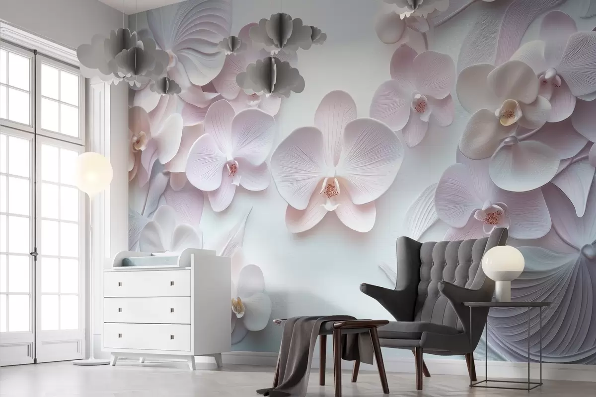 Τοιχογραφίες Ντελικάτα λουλούδια αρχιδίας σε ανοιχτά χρώματα με 3D απομίμηση Nr. w02912