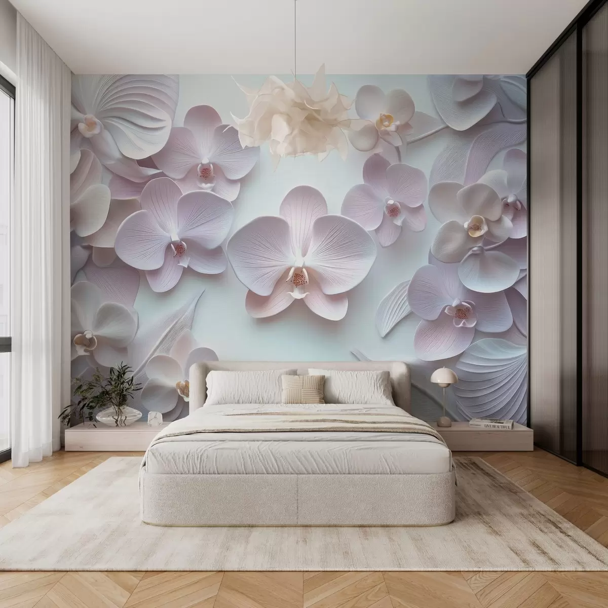 Τοιχογραφίες Ντελικάτα λουλούδια αρχιδίας σε ανοιχτά χρώματα με 3D απομίμηση Nr. w02912