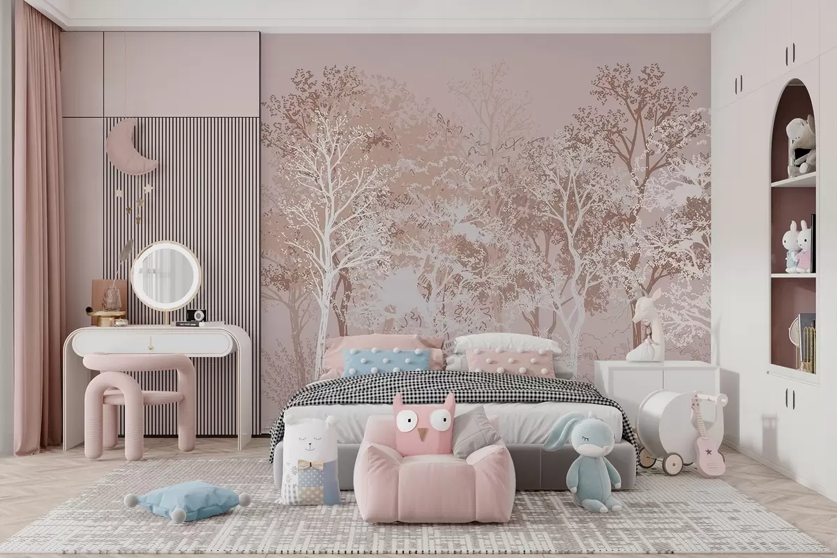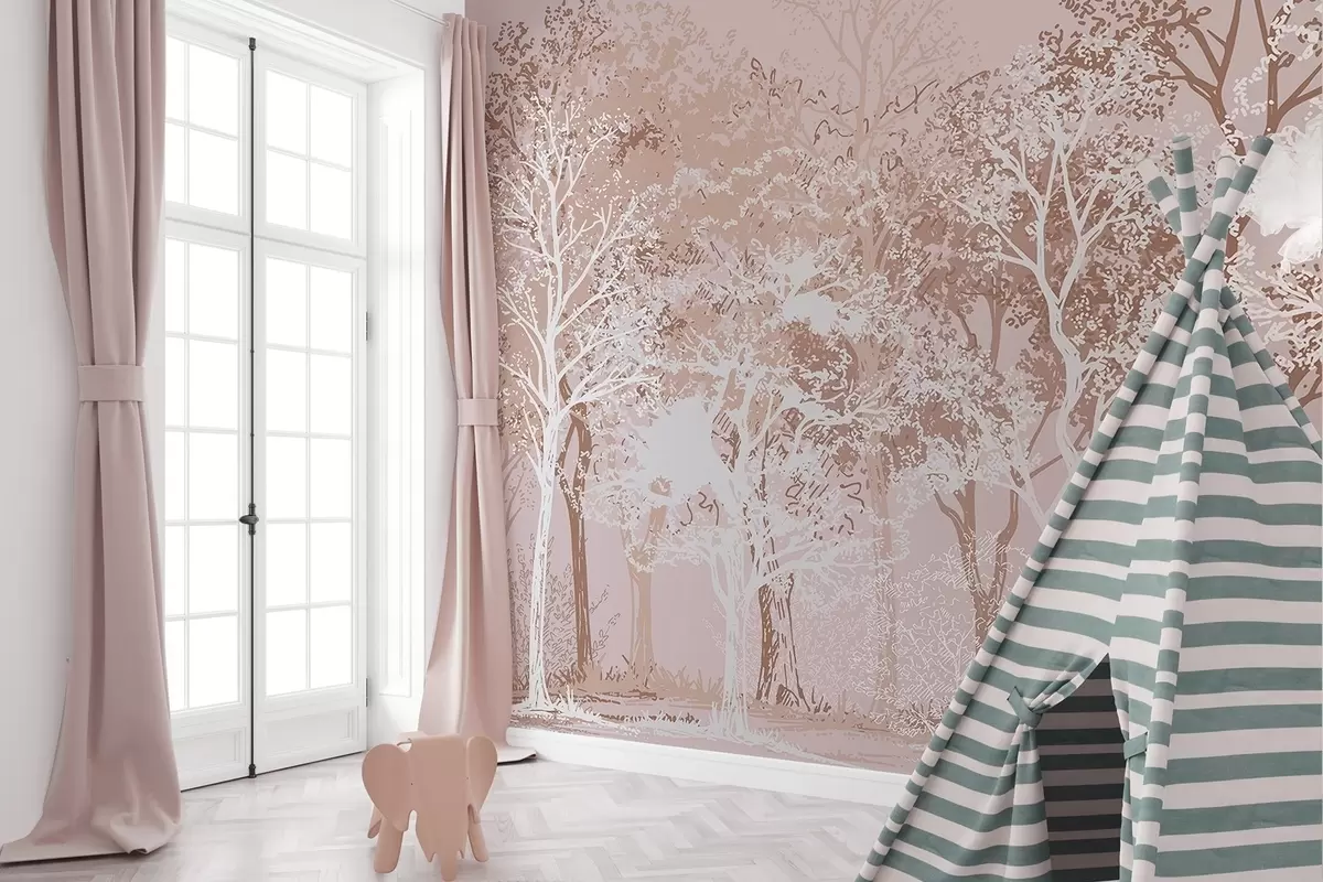 Τοιχογραφίες Δέντρα στο δάσος, μινιμαλισμός, φύση, μπεζ χρωματική παλέτα Nr. w02930