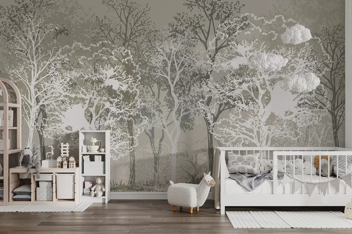 Τοιχογραφίες Δέντρα στο δάσος, μινιμαλισμός, φύση, πράσινη χρωματική παλέτα Nr. w02930v1