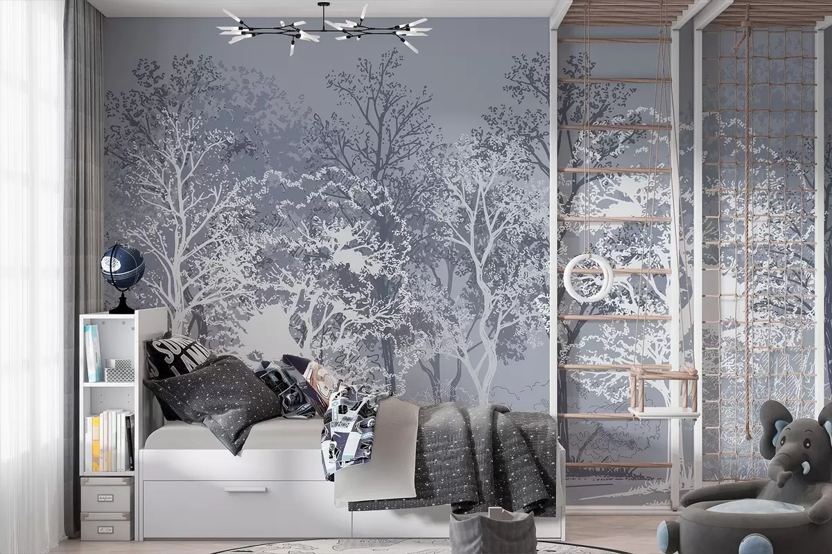 Τοιχογραφίες Δέντρα στο δάσος, μινιμαλισμός, φύση, μπλε παλέτα χρωμάτων Nr. w02930v2