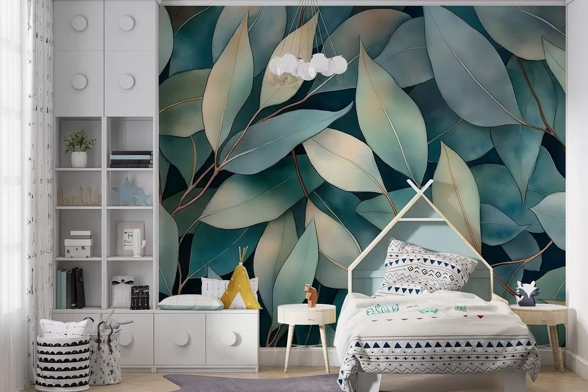 Τοιχογραφίες Ευκάλυπτος φύλλα, υδατογραφία στυλ σχέδιο, floral μοτίβο, πράσινα χρώματα Nr. w02931
