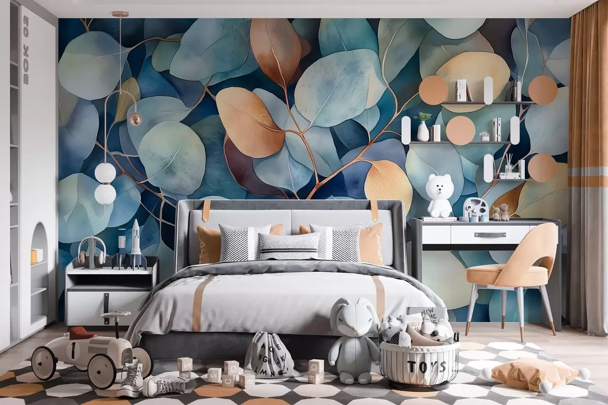 Τοιχογραφίες Όμορφα φύλλα ευκαλύπτου, floral μοτίβο, σχέδιο στυλ ακουαρέλας Nr. w02939