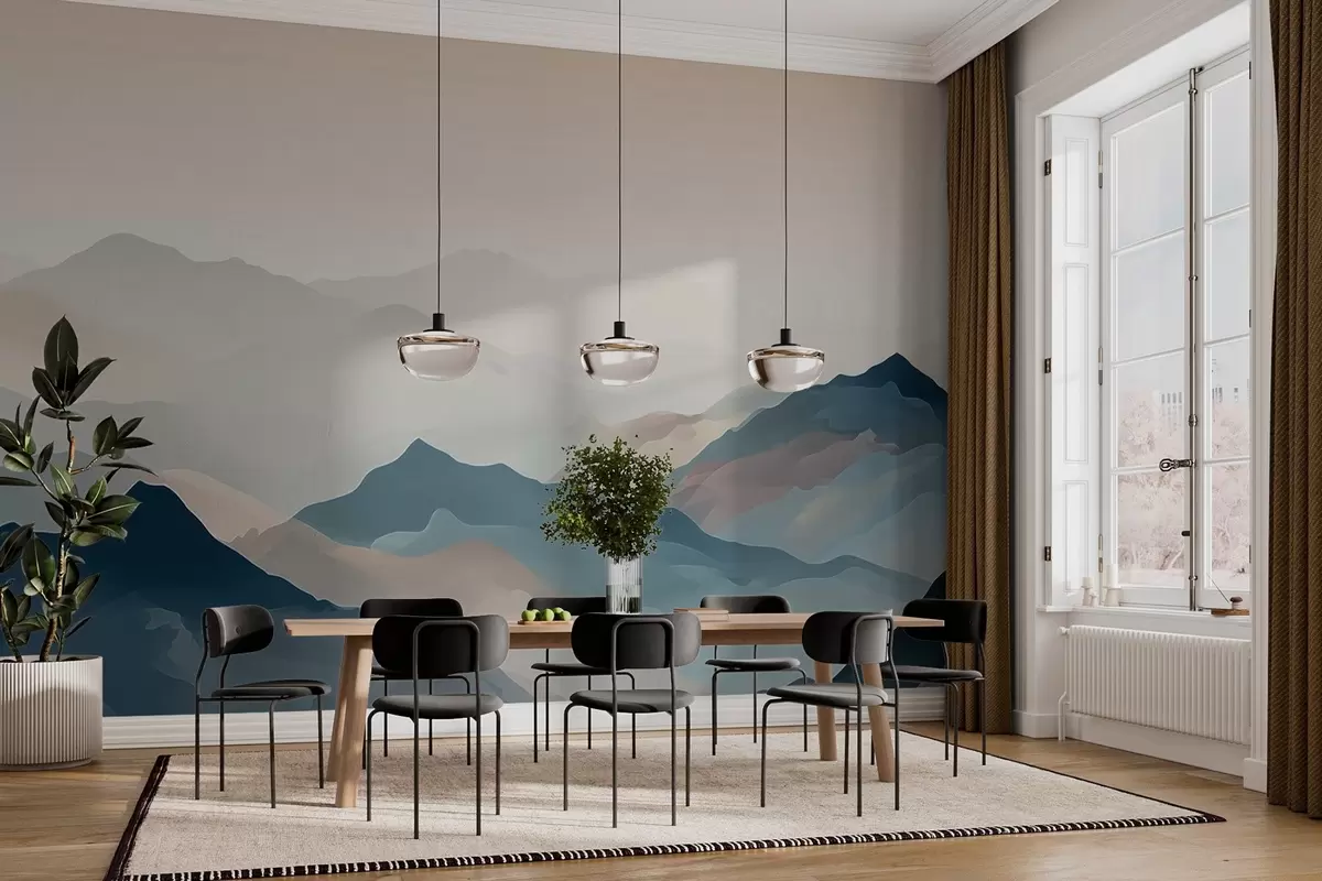 Τοιχογραφίες Ομιχλώδες τοπίο με βουνά Nr. w02997