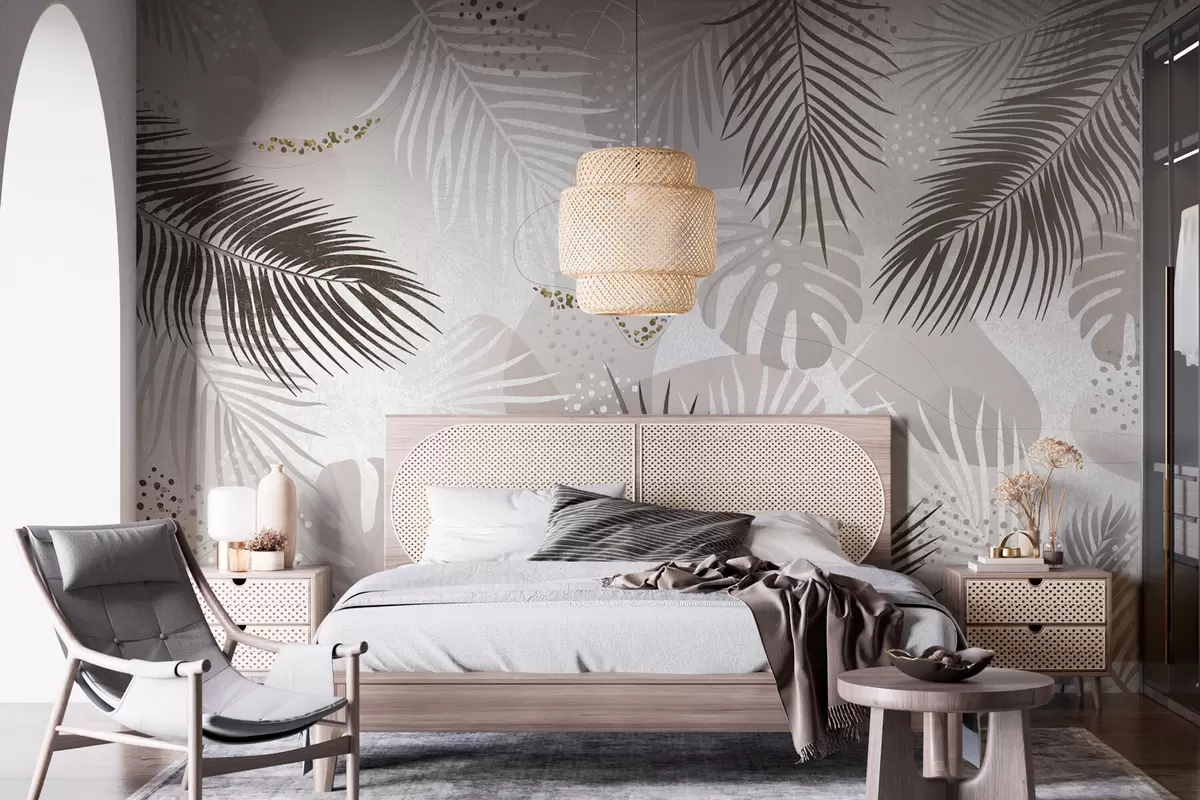 Τοιχογραφίες Αφηρημένα τροπικά φύλλα και γραμμές τάση Nr. w03060v1