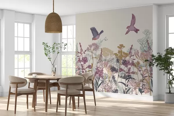 Τοιχογραφίες Βαμμένα αγριολούλουδα και πουλιά Nr. w03102
